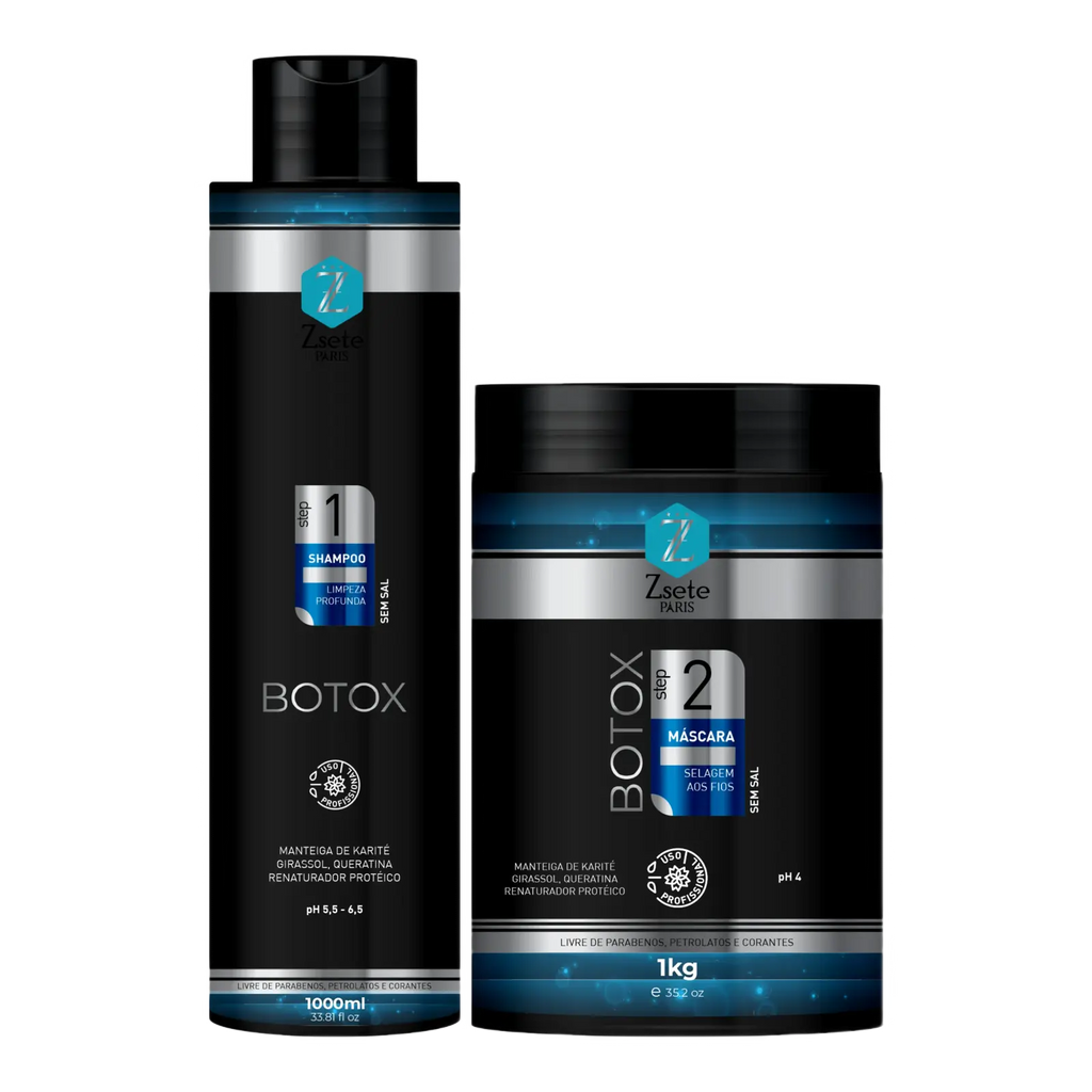 O Kit Botox Zsete Paris foi desenvolvido para oferecer um tratamento completo que alia limpeza profunda, condicionamento, hidratação e redução de volume e frizz. Sua fórmula contém tensoativos equilibrados, que removem resíduos e impurezas sem agredir os fios, enquanto ativos poderosos como ácido hialurônico e extrato de alfarroba protegem e mantêm a saúde capilar durante a limpeza.